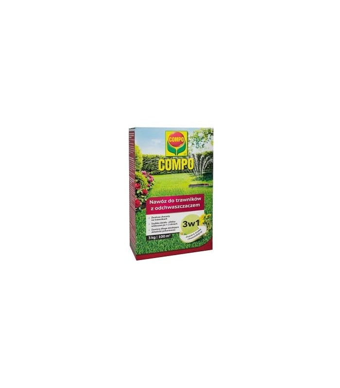 Nawóz do trawników COMPO 3w1 jest zaawansowanym rozwiązaniem dla osób pragnących utrzymać zdrowy, zielony i wolny od chwastów trawnik. Dzięki zastosowaniu substancji czynnej podczas nawożenia zwalczymy dodatkowo chwasty występujące na trawniku. Preparat działa szybko dzięki czemu efekty widać zaraz po zastosowaniu nawożenia.