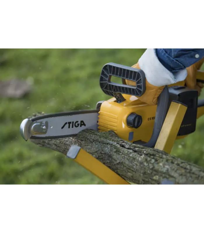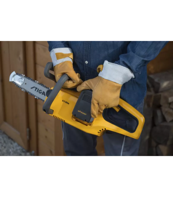 Jeśli musisz przyciąć jedną lub więcej gałęzi lub pociąć kłody do kominka, idealnym narzędziem będzie zestaw CS 100e, pierwsza piła łańcuchowa STIGA 20 V. Lekka – tylko 3,65 kg – i napędzana mocnym silnikiem o mocy 700 W, jest wyposażona w akumulator 4 Ah ePower. Prędkość łańcucha osiąga do 14,5 m/s przy maksymalnej szerokości cięcia 160 mm, zapewniając wysoką jakość cięcia. Bezpieczeństwo jest na najwyższym poziomie dzięki hamulcowi wewn. i osłonie końcówki, która zmniejsza ryzyko odrzutu. Zaprojektowany z dwoma ergonomicznymi uchwytami, bocznym i tylnym, możesz dbać o swój ogród w wygodniejszy i łatwiejszy sposób. Łańcuch można łatwo napiąć dzięki systemowi szybkiego napinania STIGA.