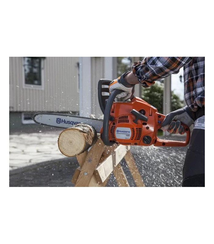 Lekka, wszechstronna i łatwa w obsłudze pilarka łańcuchowa Husqvarna 120 Mark II idealnie nadaje się do prac ogrodniczych, takich jak cięcie drewna opałowego, wycinanie małych drzew i usuwanie gałęzi. Ma silnik X-Torq®, który zapewnia dużą moc i moment obrotowy dzięki wysokowydajnemu spalaniu, i jest łatwa w konserwacji dzięki rozwiązaniu Air Injection™, które dłużej utrzymuje filtr w czystości. W przypadku odbicia skuteczny hamulec łańcucha aktywowany bezwładnościowo natychmiast zatrzymuje łańcuch, aby zmniejszyć prawdopodobieństwo obrażeń.