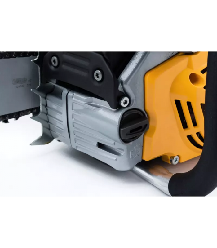 Pilarka STIGA CS 545 (16") z prowadnicą o długości 40 cm jest napędzana mocnym silnikiem z zapłonem iskrowym o pojemność 42,4 cm³ (1,9 kW), który zapewnia uniwersalność maszyny. Maszyna CS 545 (16") jest wyposażona magnezową pokrywa silnika, która jest lekka, wytrzymała i umożliwia szybkie chłodzenie. Klucz do napinania jest wygodnie umieszczony pod tylnym uchwytem, a pompa oleju automatyczna i regulowana. Dzięki różnym cechom, takim jak zdejmowanie osłony filtra powietrza bez użycia narzędzi i wziernik do sprawdzania poziomu paliwa w zbiorniku, czynności obsługowe można wykonać szybko i łatwo. Ergonomiczny, miękki uchwyt i system sprężyn zmniejszają poziom drgań i podnoszą komfort.