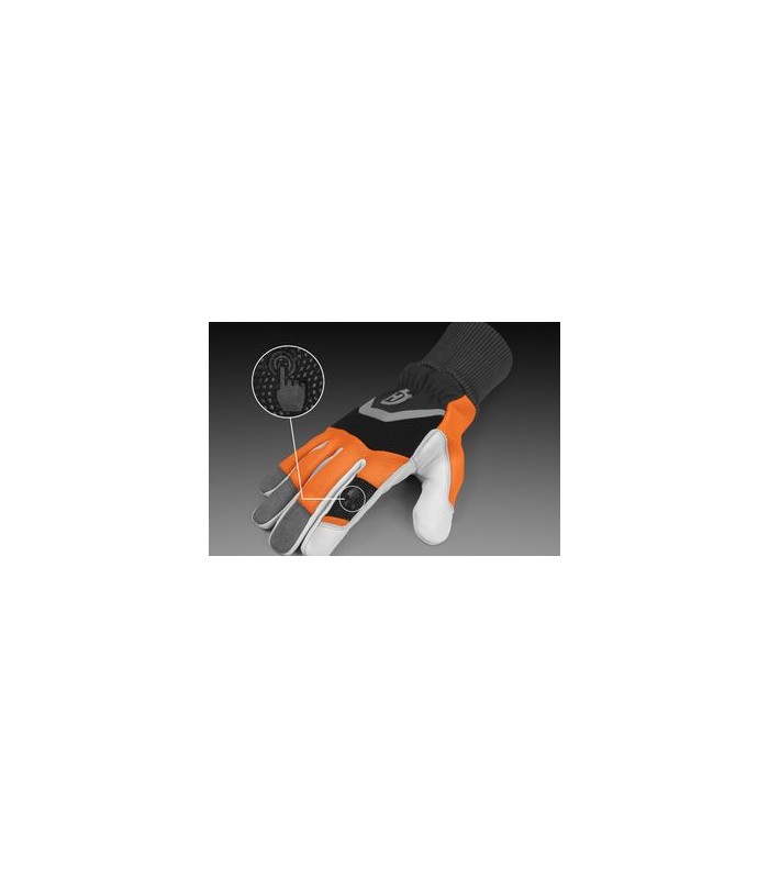 Wygodne rękawice ochronne przeznaczone do pracy pilarką łańcuchową. Spód wykonany z wytrzymałej, naturalnie wodoodpornej skóry koziej. Na kostkach palcaów pokryte neoprenem a laminowanym pianką spandeksem od spodu dla maksymalnego komfortu. Na kostce palca wskazującego znajduje się materiał przyjazny dla ekranu dotykowego, dzięki czemu możesz używać smartfona w rękawiczkach. Dzianinowy ściągacz zapewnia wygodę i ułatwia zakładanie rękawicy. Naszywka na kciuku zapewnia lepszą przyczepność i większą trwałość. Spełniają EN ISO 11393-4:2019 klasa 0 (16 m/s) i EN 388:2016. Dostepne w rozmiarach 7-12.