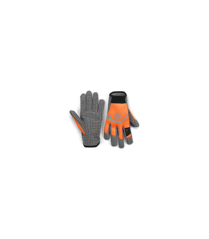 Cienkie, oddychające rękawice ochronne przeznaczone do wszechstronnych prac ogrodniczych i leśnych w ciepłe i suche dni. Wewnętrzna strona rękawicy wykonana jest z oddychającej, szybkoschnącej skóry syntetycznej, która zapewnia dobry chwyt, a wnętrze dłoni dodatkowo chronione jest amortyzującą wyściółką. Na palcu wskazującym znajduje się wstawka dostosowana do obsługi ekranu dotykowego, dzięki czemu możesz używać smartfona w rękawiczkach. Rękawice można prać ręcznie, a uporczywy brud, taki jak żywica - łatwo usunąć. Zgodne z normą EN 388: 2016. Dostępne w rozmiarach 7-10.